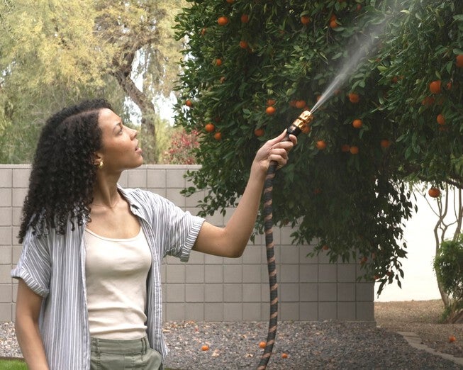 Now with 3 layers of latex tubing, 20% larger connector and three times stronger anti-tear fabric. Kink-free, lead-free, and with bonus thumb drive for easy control. Shut-off valve. 10 spray patterns. 3/4” flow diameter.