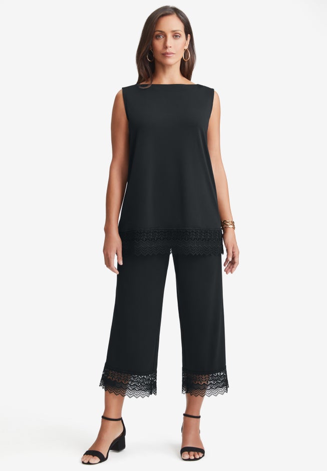 For an instant outfit that makes a stylish statement, this two-piece set delivers. Pair it together or wear with other pieces in your closet. The stretch jersey knit drapes beautifully, keeps its smooth shape wash after wash, and packs without wrinkling. Finish your look with strappy sandals and a cardigan or denim jacket!