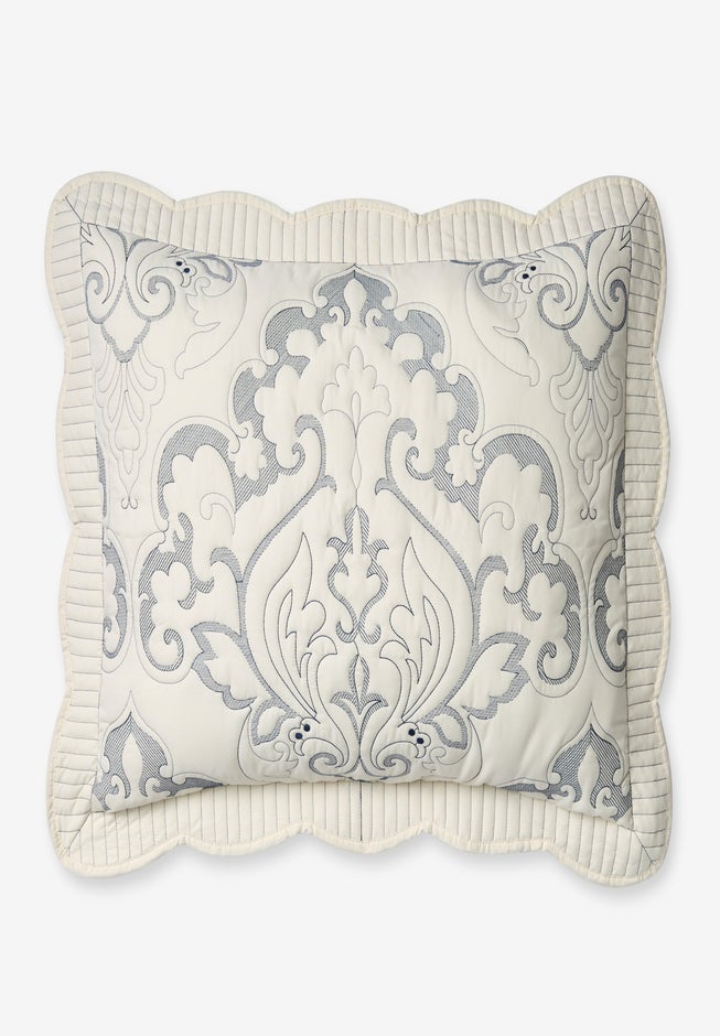 Our popular Amelia sham features meticulous allover embroidery in a damask motif and a quilted scalloped border for extra style. Made with superior softness, you'll love it in the guest and master bedroom.