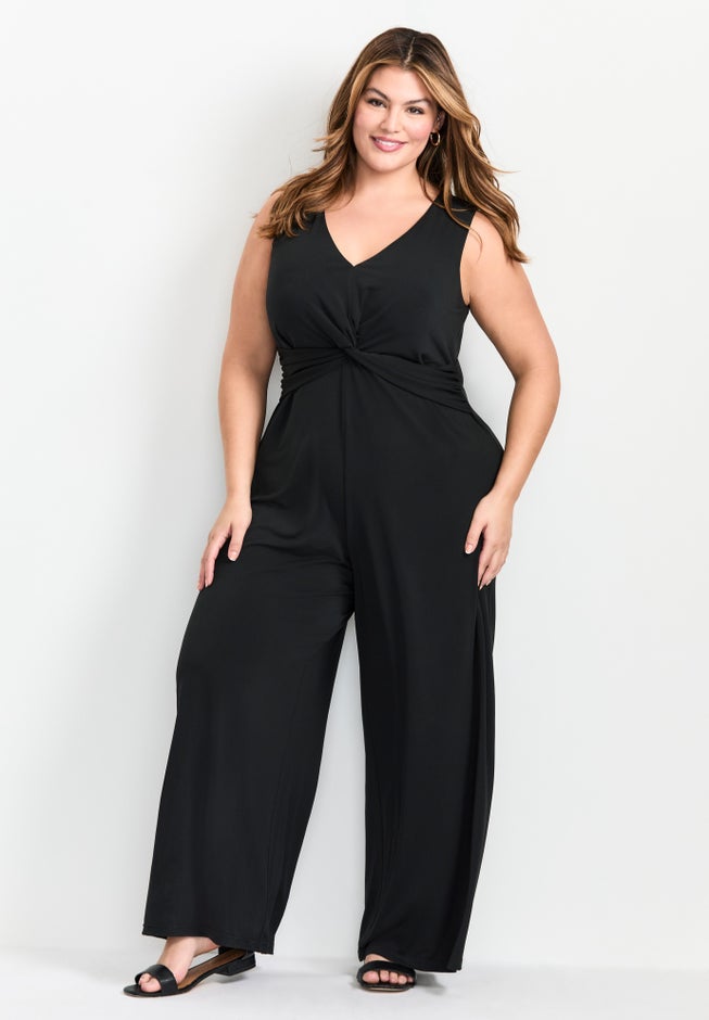 Step out in style with the Audrey Twist Front Jumpsuit—a perfect blend of sophistication and comfort! This sleeveless wonder boasts a V neckline and stretch ITY jersey fabric, ensuring you stay comfortable all day. Its wide leg silhouette transitions seamlessly from desk duty to dinner dates, making it your new go-to for turning heads. Whether you're heading to the office or out on the town, this jumpsuit's stretch lining keeps you feeling fabulous! Think of your work wardrobe as your daily power suit—only cooler, comfier, and way more you.