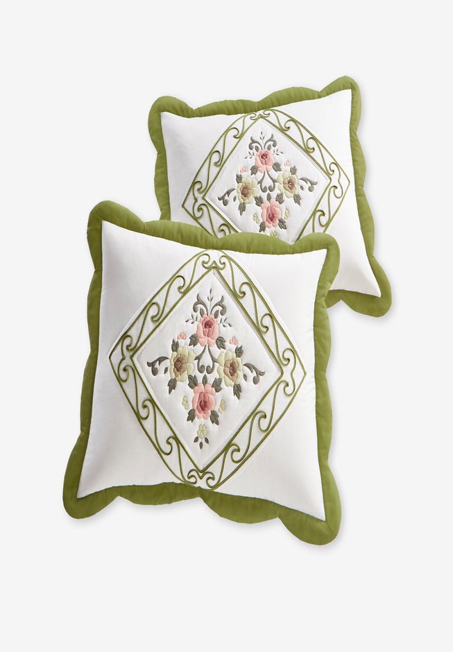 Floral appliqués and soutache-style embroidery on a quaint country-style sham.