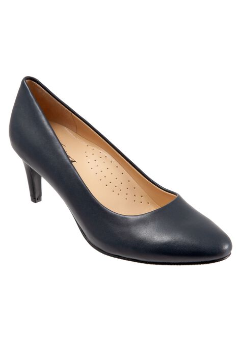 Trotters continue to be the leader in dress pumps with comfort features and benefits. Babette brings new height to the range with this new heel. Cushioned footbed and comfortable toe shape brings all day comfort to your dress shoes.
