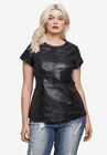 Leather top with scoop neckline and center front seams. Cap sleeves. Back zip with hook and eye closure. Fully lined.