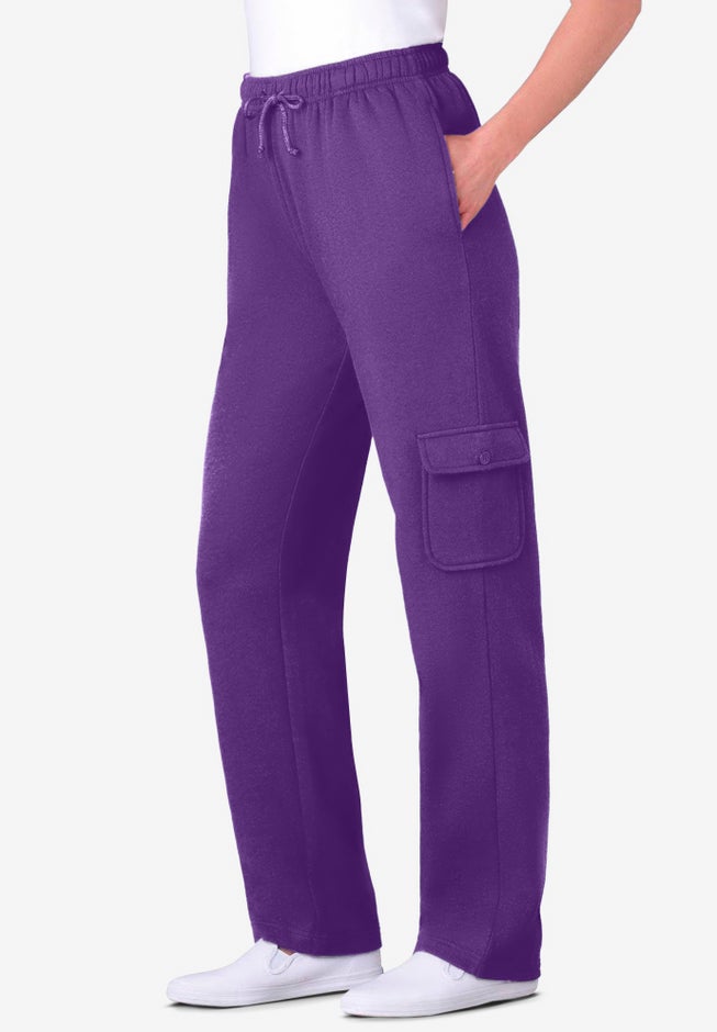 Item Number: 1010622These pull-on fleece sweatpants with a straight leg and cargo side flap pockets are relaxed and casual. Supersoft on the inside and smooth on the outside, you’ll love cozying up in this much-loved fleece knit. An elastic waistband with adjustable drawstring feels good all day long and fits perfectly. Wear them for lounging or relaxed days.