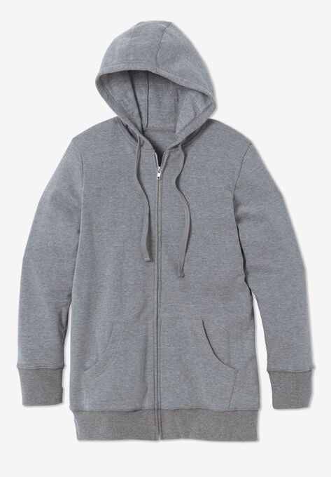 Item Number: 1010579Heathered fabric gives a casual look to this super comfy fleece hoodie. Made in a relaxed fit, the rib knit trim, drawstring on the hood and front pockets have a classic hoodie feel. Zip it up to stay warm, or wear it open as a laid-back layer.