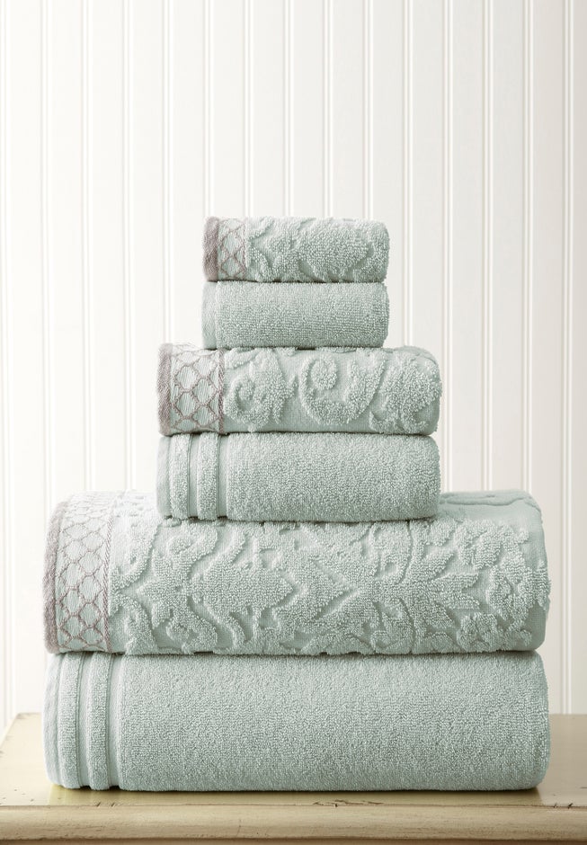 Wrap your bathroom in luxury with the BH Studio Jacquard Towel Set, featuring an intricately woven scroll design and a richly textured border. These beautifully detailed towels bring depth, pattern, and five-star comfort to your home, making your master bathroom feel like a personal retreat. Perfect for anyone who values high-quality home goods and timeless bathroom décor.