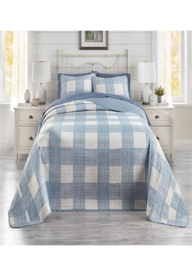 Oversized to drape all the way down to the floor, this softly quilted bedspread layers beautifully over your sheets and is perfect for higher platform beds. Detailed with classic diamond-pattern quilting or allover textured quilting for a cozy touch. The stitched borders along the edge give this bedspread an enhanced look. Its reversible style creates double the options for making your bed in varying colors and patterns.