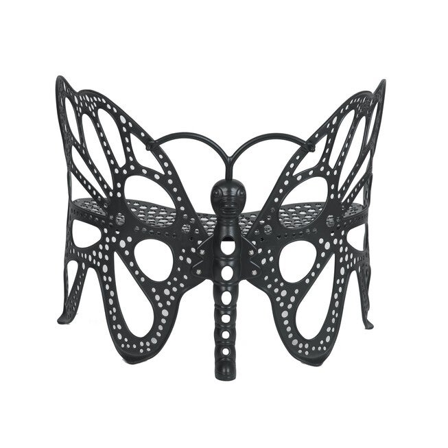 This Butterfly Bench™ will add a functional, elegant, focal point in your home or garden. Classic wrought iron design in lighter, rust-free cast aluminum. Durable, all weather, powder coated finish. Easily assembles to full adult size, comfortable attractive art.