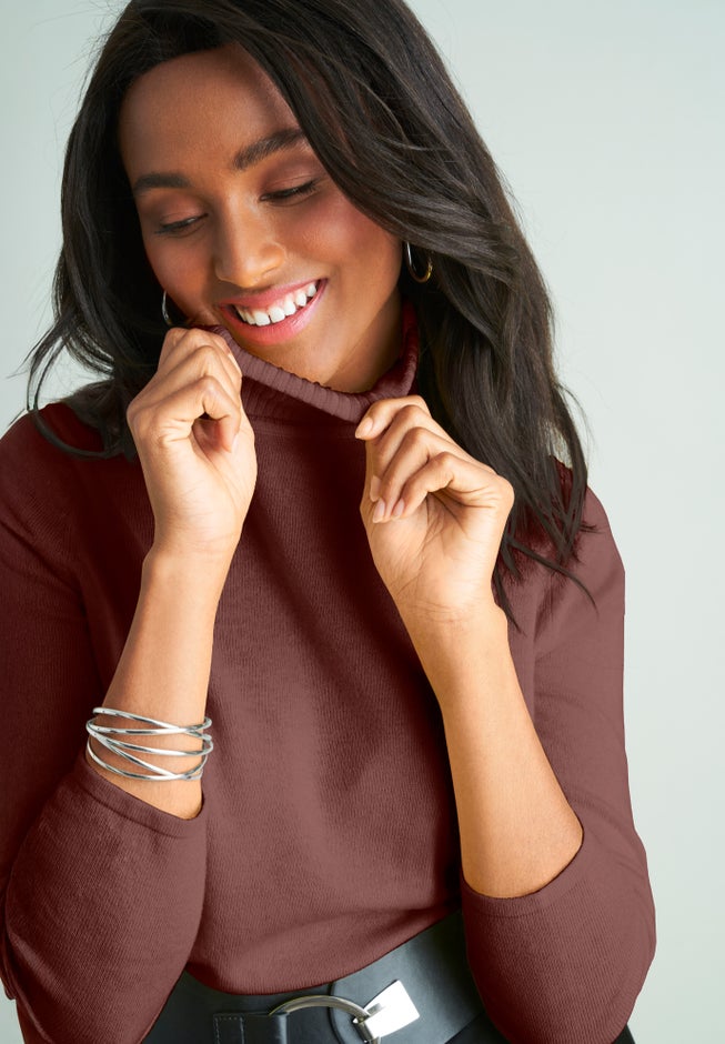 The Jessica London women's plus size Cotton Cashmere Turtleneck is a timeless sweater for easy style. Features a tailored silhouette and polished tubular finish on the hem and sleeves. Pair it with jeans or a pencil skirt for a comfortable look to wear morning to night.