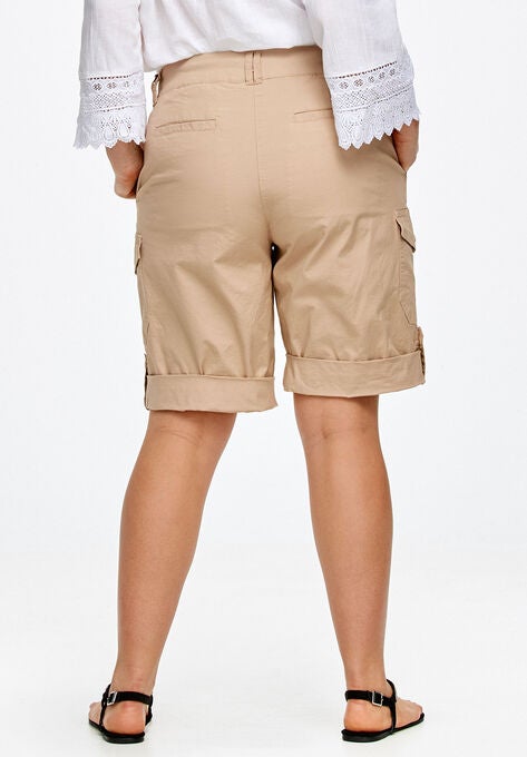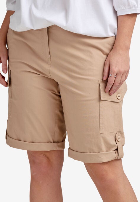 These casual convertible cargo shorts make any day feel relaxed! The stretch cotton poplin fabric provides a structured fit with just the right amount of comfy stretch. Go from shorts to Bermudas with the convenient roll tabs.