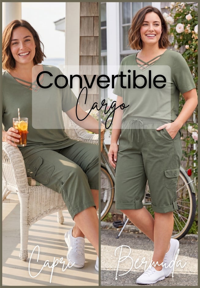 Item Number: 1036942These convertible capris easily transform into Bermuda for two-in-one versatility that works from day to night. Made from 100% cotton, they’re lightweight, breathable, and built for comfort.