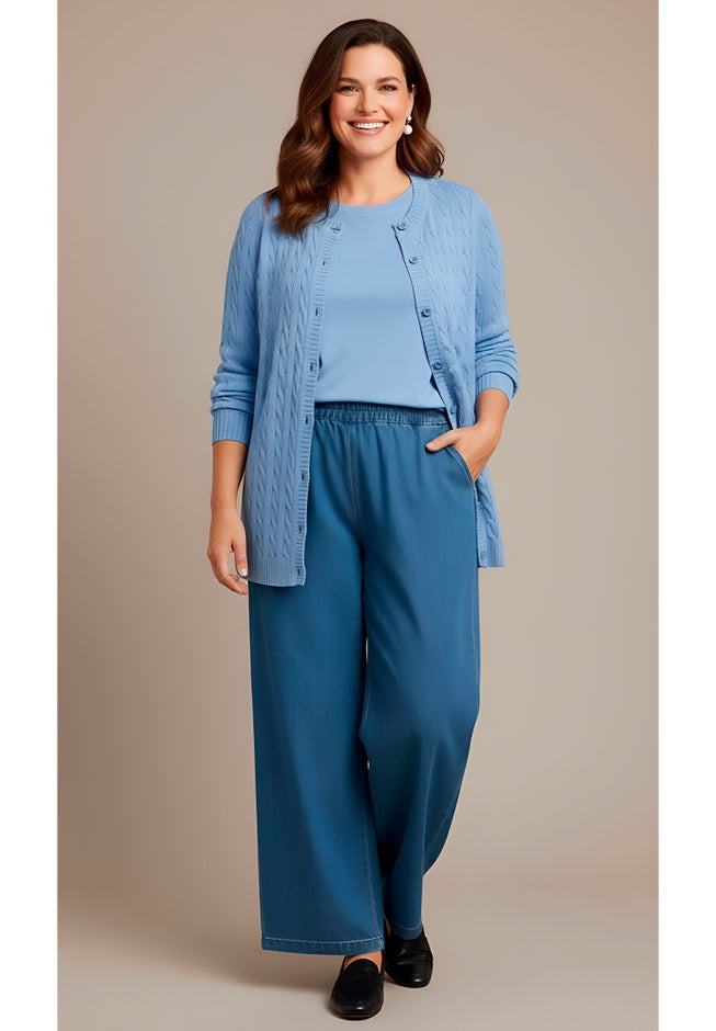 Item Number: 1004354Bold color, rich cable texture and softest pure cotton make this knit cardigan a welcome addition to your sweater wardrobe. The crewneck makes it a wonderful choice with a simple tee.
