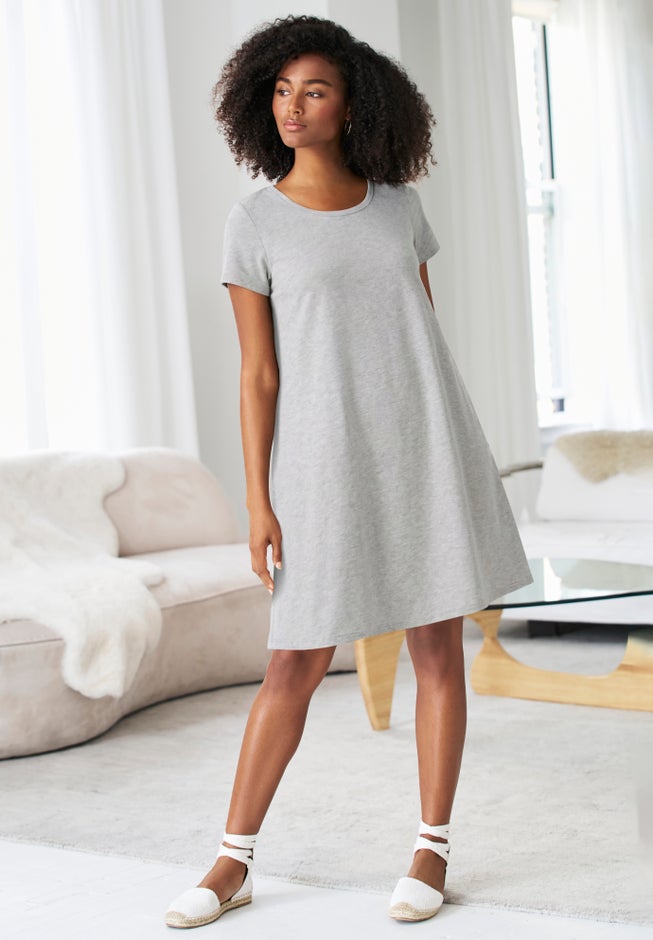 A casual favorite for every day, our relaxed and lightweight knit tee dress features a scoop neckline and cap sleeves. Pair with a denim jacket for a cooler take on warm weather outfitting. Dress it up with espadrilles for a casual summer lunch.