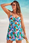 Dress in beach-chic fashion with our Cup Sized Tie-Front Underwire Swimdress. It has an easy, relaxed silhouette designed with a flirty sweetheart neckline and adjustable straps so you can customize the fit to your liking and a full one piece suit underneath. Wear when you want to swim or socialize in style.