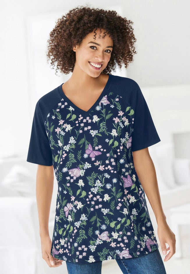 Item Number: 1062026Wherever your day takes you, comfort is key and this tee delivers. It has a relaxed fit and comfy elbow length raglan sleeves.
