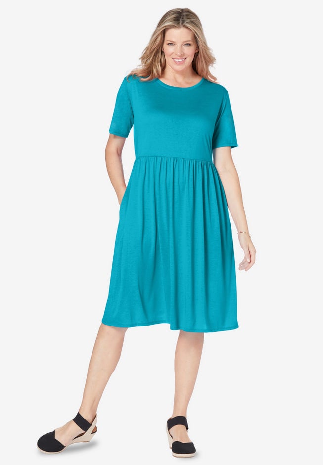 Item Number: 1029141- Soft and relaxed tee dress, empire waist for ultimate comfort.
