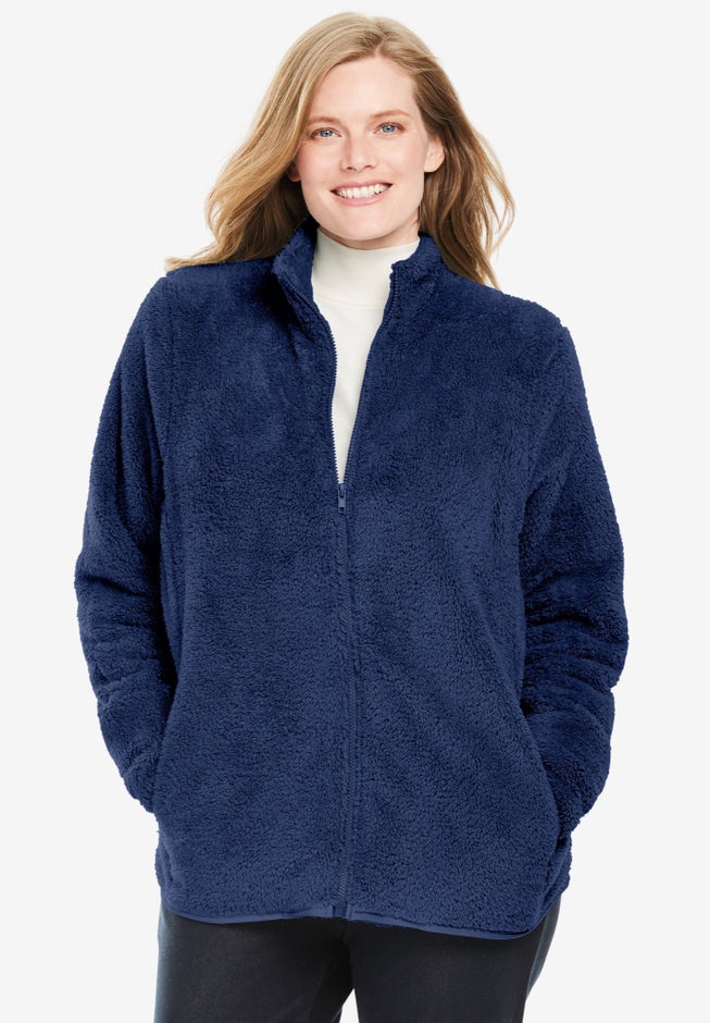 Item Number: 1032091Irresistibly plush fabric that's so light you won't believe it! Cozy up in this full-zip jacket. A must-have layer for chilly A/C or when the sun goes down. Side pockets. Stand collar.