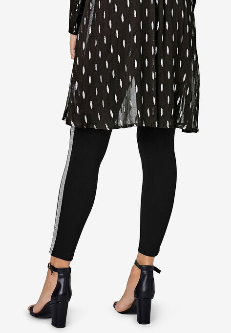 Add a little shine to your everyday rotation with this glitter side-stripe legging. Whether you're dressing it up for an event or keeping it simple for work, this is a style-meets-comfort piece you have to have.