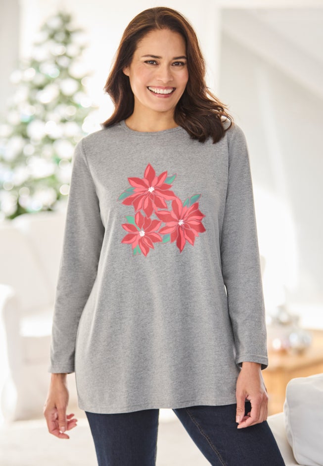 Item Number: 1007060Celebrate the season with these super cute graphic screen printed tees featuring festive motifs. Comfy jersey pairs with a relaxed fit and long sleeves to keep you cheery. Perfect for gifting.