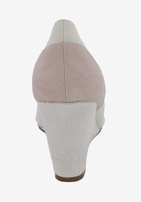 Jezebell by Bellini comfort wedge give a retro vibe to your outfit. Patchy shades of pink made of the most realistic faux leather make these safe to wear even on rainy days! With a 3" wedge heel, Jezebell offers the perfect balance for your feet, so they will keep you comfortable and stylish all day long. 3" Wedge Heel
