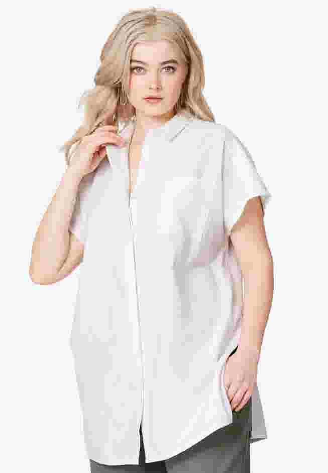 We've used summer's most lightweight and airy linen-blend fabric to create a timeless staple. The easy-care fabric makes it a versatile piece that will last for seasons to come. Pair it with our linen-blend drawstring pants for a laid-back look.