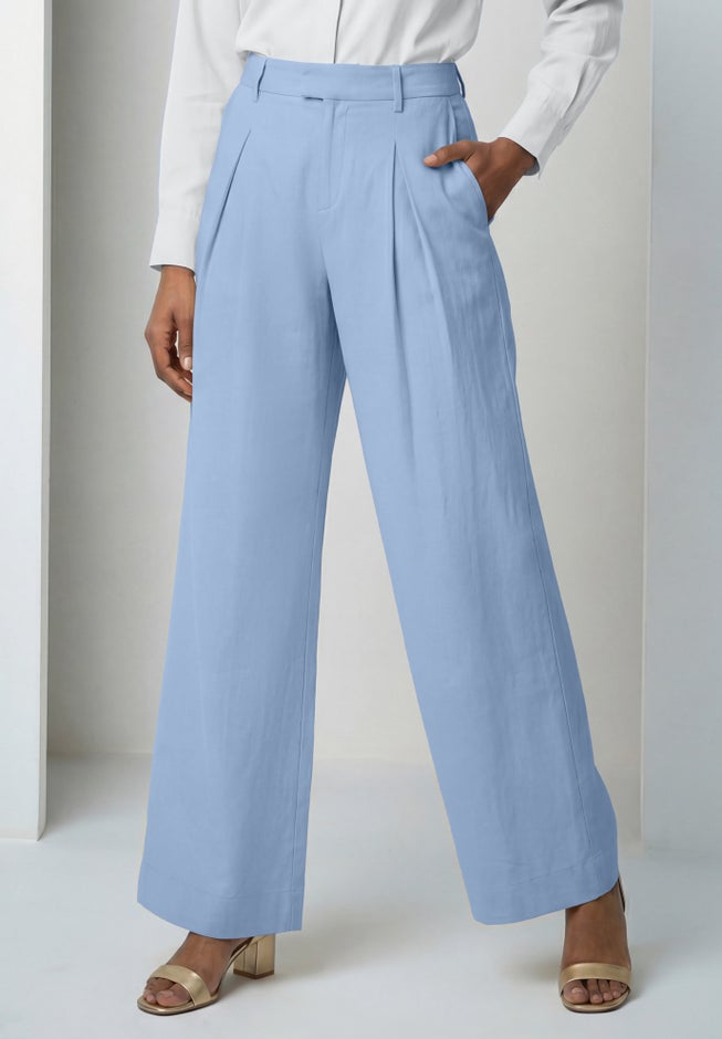 A breezy wide-leg trouser designed with fluid movement and lightweight comfort for an effortlessly polished look.