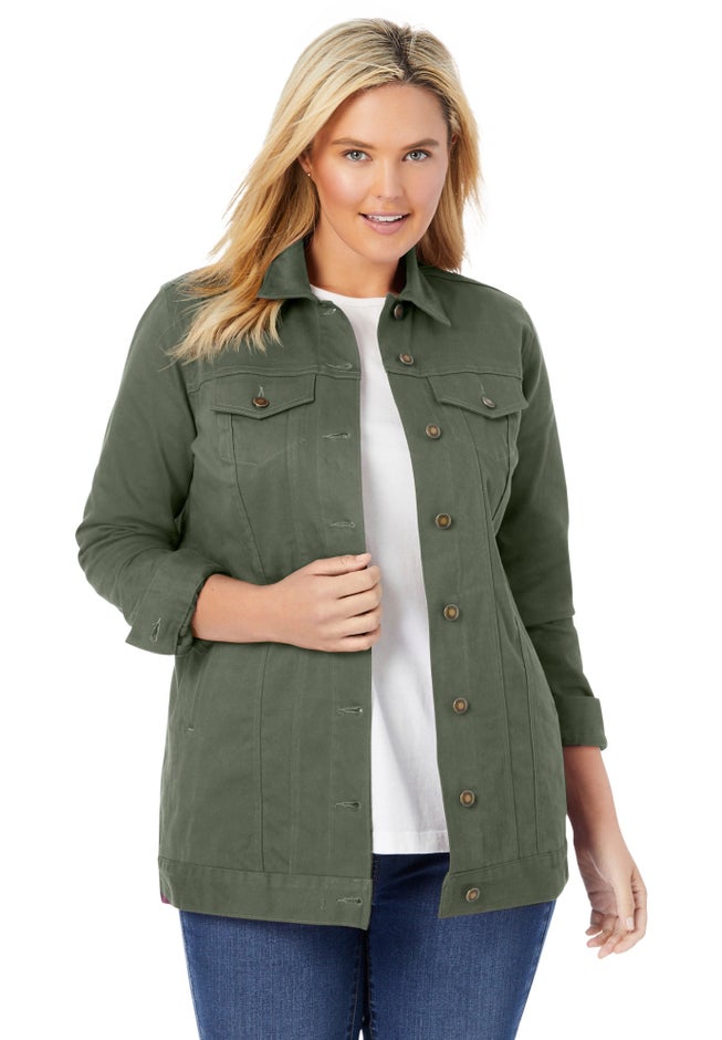 Item Number: 1032023Our Long Stretch Denim Jacket is a longer length take on the classic style. It has a flattering A-line shape and is easy to move around in thanks to added stretch. This jacket is sure to be your new go-to.