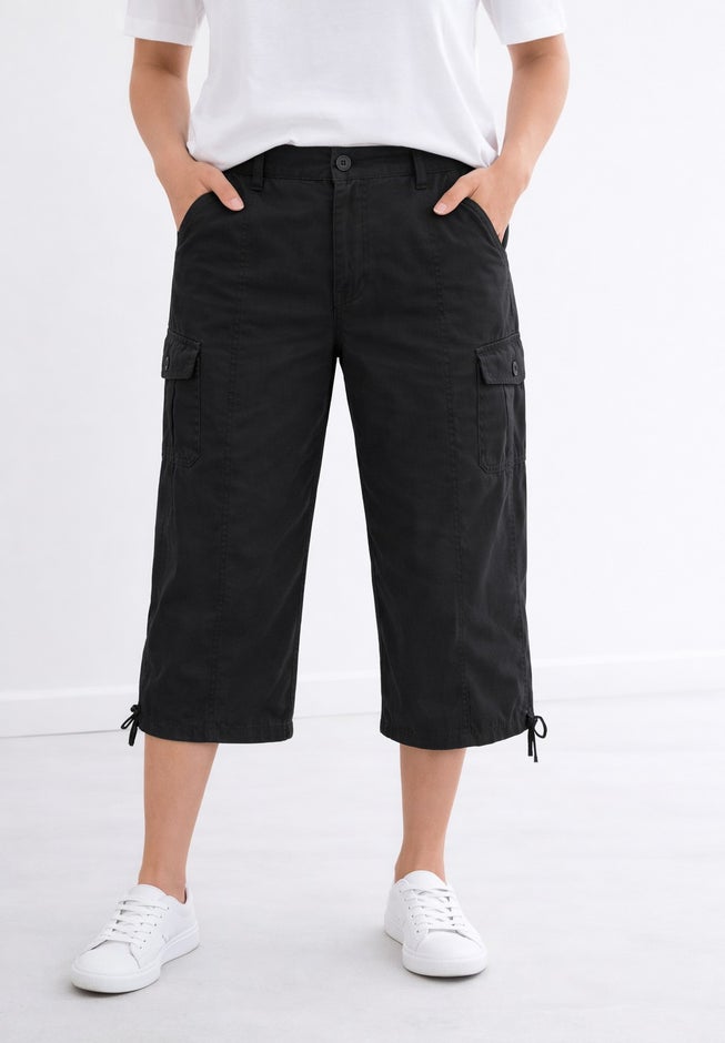 On trend and on point, these women's plus size Mid-Rise Stretch Cotton Cargo Capris  are crafted from our stretch cotton fabric for endless comfort. They have a comfortable fit with a flattering cropped cut and feminine side ties, perfect for a weekend-casual look. Pair them with your favorite sneakers and a classic tee.