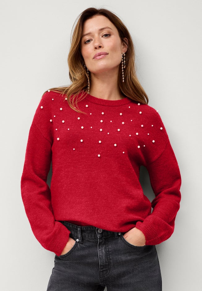A little embellishment goes a long way with this beautiful pullover featuring pearl details. It's a must for the holidays or any time you want to look and feel special. Its classic silhouette is easy to style and comfortable to wear.