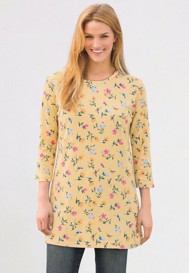 Perfect Printed Three-Quarter-Sleeve Scoopneck Tunic