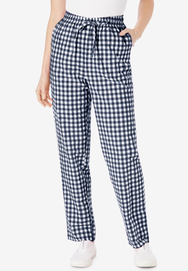 Item Number: 1009781Light, breathable, and effortlessly stylish—our seersucker pull-on pants are your warm-weather go-tos. Made from airy cotton seersucker in beautiful solids, pretty plaids, and summery gingham, they're designed for all-day comfort with an easy fit and laid-back charm.