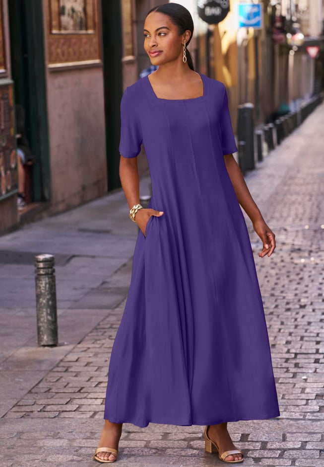 Now it’s easier than ever to be best dressed! This goes-everywhere dress is the perfect piece to transition through the seasons. Features a relaxed fit and flare silhouette and a full sweeping skirt.