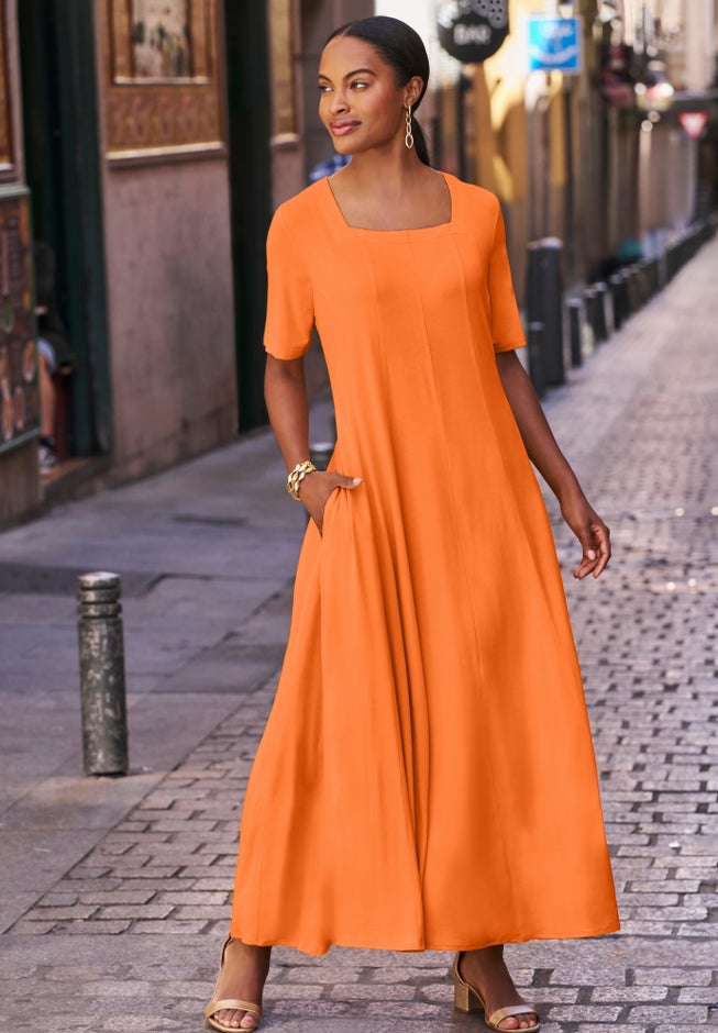 Now it’s easier than ever to be best dressed! This goes-everywhere dress is the perfect piece to transition through the seasons. Features a relaxed fit and flare silhouette and a full sweeping skirt.