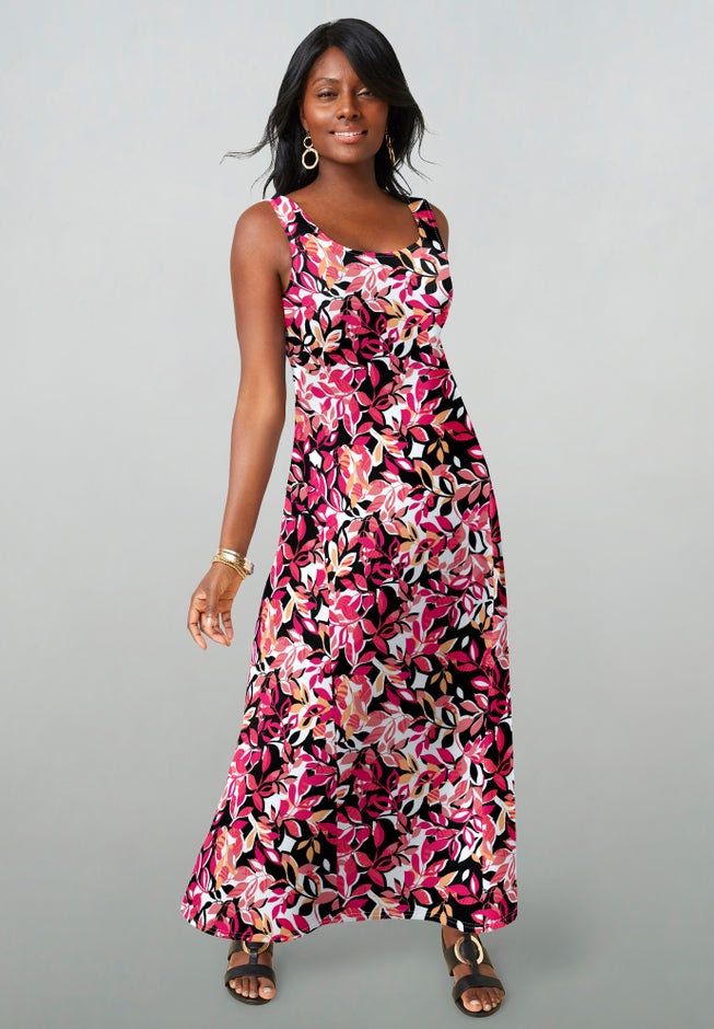 Scoop-neck tank dress in a feminine A-line silhouette.