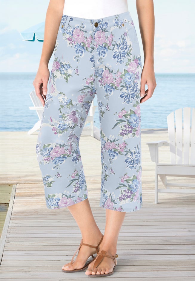 These classic five-pocket capri jeans are made from soft stretch cotton for a great fit that moves with your body. A straight mid-calf cut, slit at the leg openings, achieves a fashionable, laid-back silhouette. Our special stretch blend hugs your curves comfortably, achieving a feminine shape. The zip fly front secures with a jean tack button.