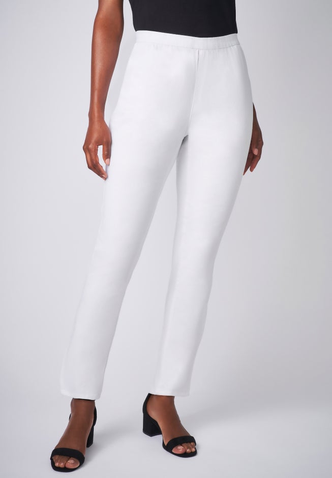 This women’s plus size stretch denim straight-leg jegging is denim at its most comfortable—perfect for long days, travel, or anytime you want softness, stretch, and simplicity with a denim-inspired look. Made from our highest-stretch denim fabric, it flexes easily with your body while maintaining a smooth, streamlined appearance.