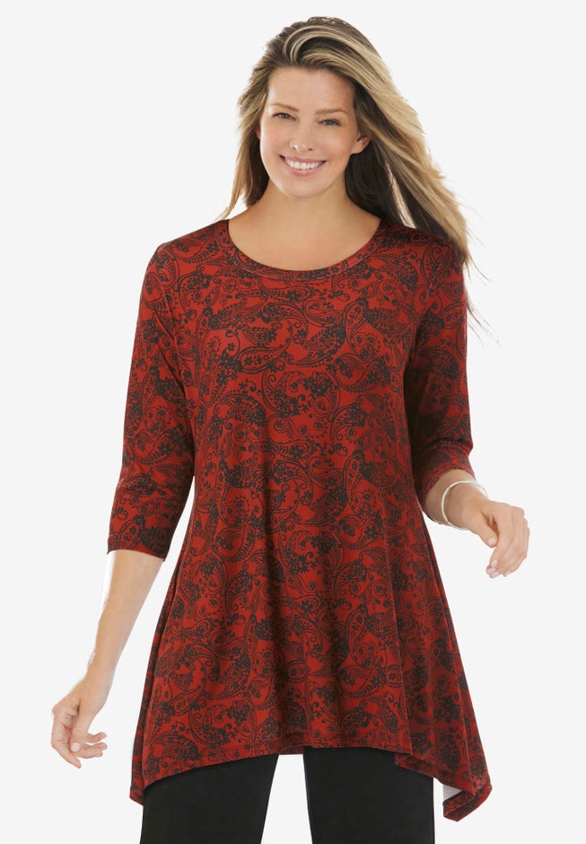 • Longer tunic length provides ample coverage, pairing perfectly with jeans, leggings, or skirts.