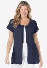 Item Number: 1004951Coverage, comfort, and style, this Tie-Neck Pointelle Cardigan Sweater has it all. Its drapey silhouette is flattering and is breathable enough to wear on warmer days. Pair this cardigan with everything from a dress to a tee and jeans.