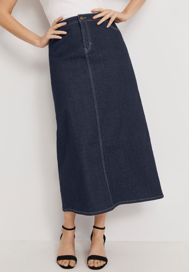 True Fit Stretch Denim Midi Skirt