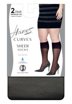 A 3-pack of sheer knee-high socks with a run-resistant toe and extra-wide comfort top.What customers like:Value for money High quality Sheer yet durable Good fit Comfortable and soft