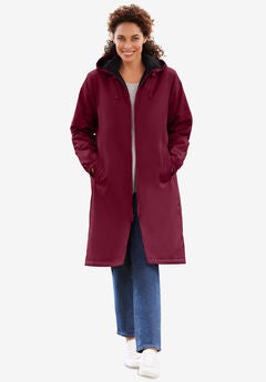 A water-resistant mid-length raincoat with a cozy fleece lining and adjustable zip-off hood.What customers like:Comfortable fit and coverage Vibrant color options Versatile for multiple seasons Lightweight and portable Warm fleece lining