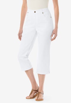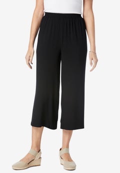 A stylish and chic alternative to skirts and shorts, capris and cropped pants are a great way to update your work wardrobe. The shorter silhouette feels fresh and modern, plus they’re incredibly easy to dress up or down. Our plus size capris come in a variety of lengths—from above the knee to just above the ankle. To find the most flattering pair, pay attention to the length. Avoid styles that hit the widest part of your calves and look for pairs that fall above the thinnest part of your ankles. If you’re a pear shape, flat front, straight-leg styles can balance out wider hips. If you’re an hourglass or have thick ankles, try a tapered capri in a drapey fabric. Rectangular shapes can create a more curvy silhouette with pleated styles. Whatever your shape, you’ll find a pair that looks and feels great to wear.