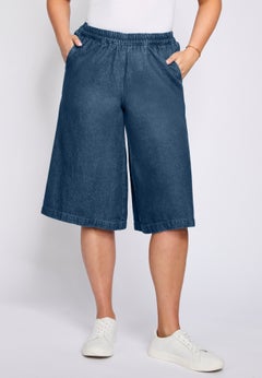 Our plus size capris also have details designed to both enhance and comfort your body. Look to our elastic waist capris for a forgiving band that can contract and expand to meet your needs throughout the day. Pick up a pair of tummy-taming capris to slim your midsection with a hidden front mesh panel and elastic sidebands. Or, reach for a pair of smooth-waist jean capris that feature the touch of stretch you need for all-day comfort and wear.