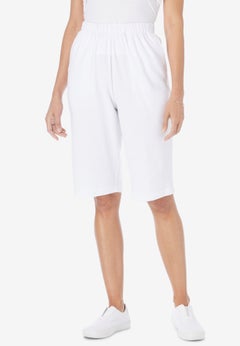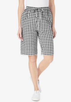At Woman Within, there’s a pair of shorts for everybody. You just have to find the one that suits your body. The key is to highlight your best assets while downplaying your least favorite. If you’re an apple shape, pick a pair that nips in your waistline without creating a muffin-top effect. Try fitted styles with a high waist or a belt and pair them with looser fitting tops to create a more balanced look. If you have a pear shape, highlight your waist and downplay your hips with soft, flowing A-line styles that hit above the knee. If you’re an hourglass, you can pull off most styles as long as you pair them with the right top. Accentuate your natural curves with form-fitting styles or mid-rise shorts with contoured waistbands. Rectangular body types can create the illusion of curves with print and textured styles or form-fitting, knee-length shorts like Bermudas.