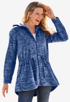 Don’t let rainy days get you down. Our collection of plus size raincoats is so fun and stylish, you’ll be looking forward to the next downpour! From sporty anoraks to packable windbreakers and cozy fleece jackets, you’ll find plenty of options to keep you warm and dry, rain or shine. Most importantly, our plus size rain jackets are designed for sizes 12W and up and feature figure-flattering details like a relaxed cut, drawstring waist and longer lengths.