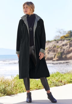 The perfect mix of fashion and function, our cheerful layers will help you weather any storm. Designed to repel wind and rain, our plus size rain jackets offer tons of features like water-resistant fabrics, removable hoods and snap plackets. Choose a classic slicker in a bright color so you can stand out from the crowd, or a classic trench for your commute. Either way, our collection of plus size raincoats will keep you covered in style. If you want something polished and professional, try a trench or a trendy parka. If you want something sporty and casual, our quick-dry Taslon® raincoats never disappoint. Reversible and water-resistant, they’ll give you plenty of protection so you can skip the umbrella. With so many colors, patterns, prints and silhouettes, you’ll brave the elements looking and feeling your very best.