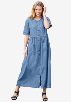 Whether you're shopping for work, weekend, or a special occasion, we have the best selection of women's plus size dresses and skirts. With sizes ranging from 12W to 44W, there's a beautiful piece for every full-figured woman. We want you to enjoy the femininity, comfort, and ease that all of our dresses and skirts have to offer, like a fun and flirty short cotton dress, a cool and casual caftan, a versatile denim skirt, or an eye-catching floral maxi.
