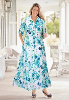 Whether you're shopping for work, weekend, or a special occasion, we have the best selection of women's plus size dresses and skirts. With sizes ranging from 12W to 44W, there's a beautiful piece for every full-figured woman. We want you to enjoy the femininity, comfort, and ease that all of our dresses and skirts have to offer, like a fun and flirty short cotton dress, a cool and casual caftan, a versatile denim skirt, or an eye-catching floral maxi.