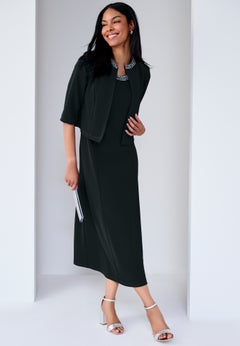 Our collection is available in a variety of lengths and sizes ranging from 10W – 44W. You’ll also find that they appeal to all styles and tastes. Our shirtdresses are classic and on-trend, our A-lines dresses are traditional and timeless, and our fit and flare dresses are flattering and functional. We also carry many more beautiful and unique cuts to help you create the silhouette you desire.