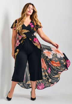 Plus size jumpsuits instantly elevate your personal style, which is one of the many reasons we adore them so much. They’re great one-and-done looks that are also fashionable, easy to wear and maintain, and super flattering. Our plus size jumpsuits are available in sizes 1X to 5X and feature silhouette-enhancing details, like waist-tie sash belts and wrap-front tops.